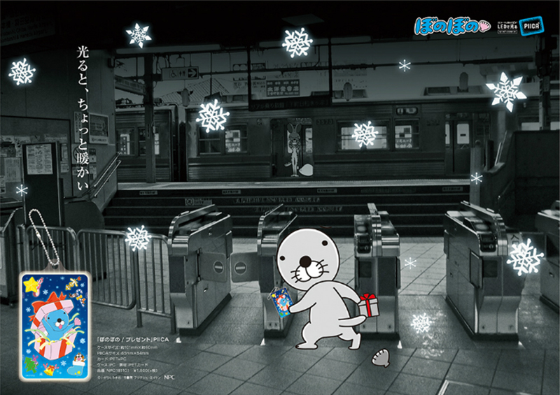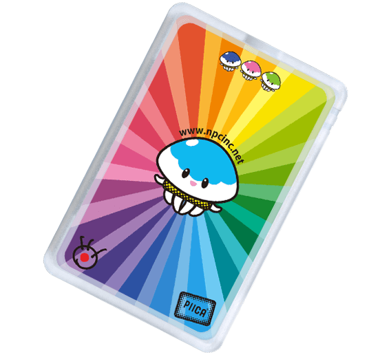 お手持ちのICカードをピーカ®(カード)付きパスケースに入れてピッとかざすだけでピーカ®(カード)表面にプリントされたデザイン(絵柄)が光ります。